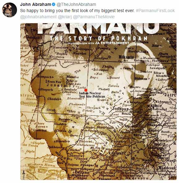 In the poster, the map of Pokhran is shown with John's face hiding as a camouflage.