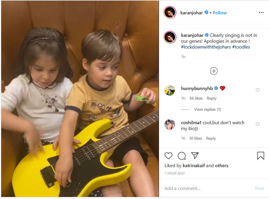 Accepting that singing is something that the Johar family is not good at, the 47-year-old director wrote in the caption, "Clearly singing is not in our genes! Apologies in advance! #lockdownwiththejohars #toodles."