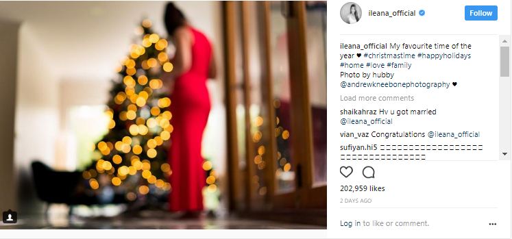 New Delhi: Bollywood star Ileana D'Cruz has sparked marriage rumours with her latest Instagram picture.