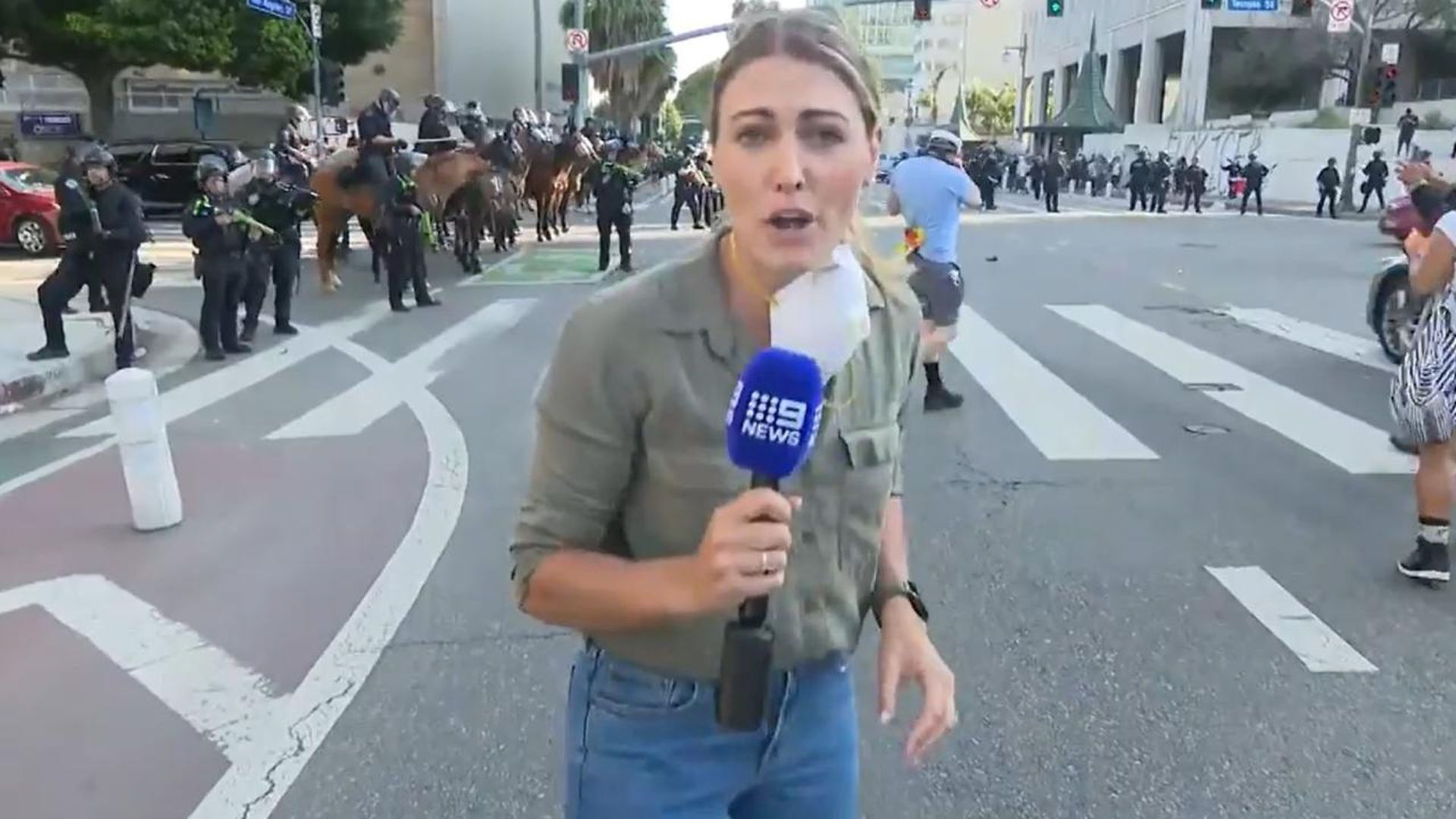 Television news reporter Lauren Tomasi was covering the ongoing protests in Los Angeles for Australia's Nine Network News on Sunday local time when she was shot in the leg with a rubber bullet fired by a police officer in the city's downtown district.