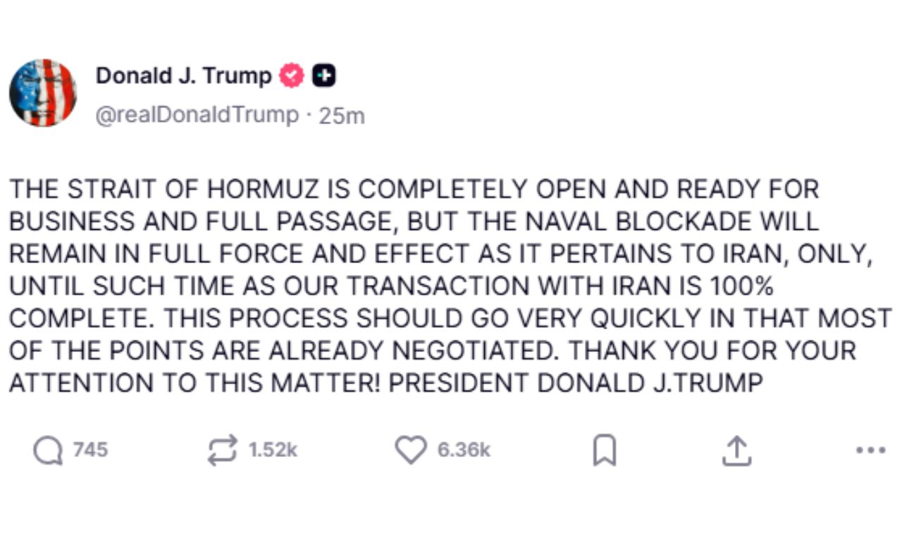 New Delhi: US President Donald Trump issued a major statement, declaring that the Strait of Hormuz is now fully open and ready for trade. This signifies that the movement of ships can now proceed normally, potentially providing relief to global commerce.