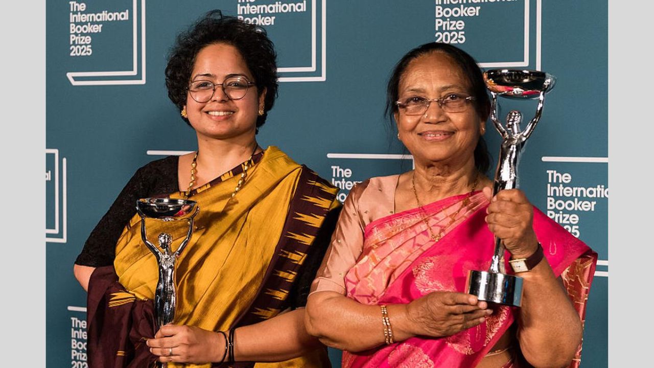International Booker Prize 2025 winner Banu Mushtaq (R) and translator Deepa Bhasthi