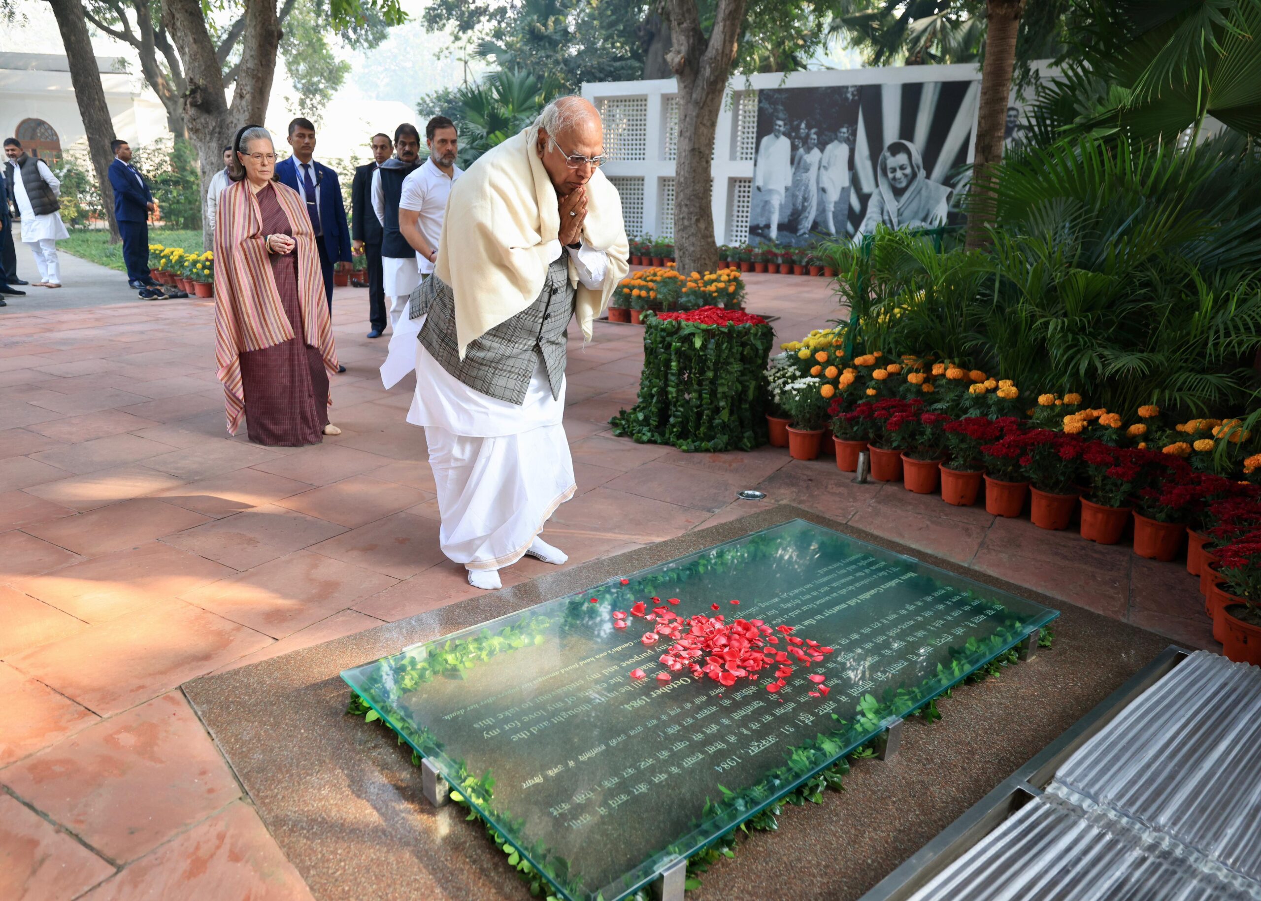 Congress President Mallikarjun Kharge, Parliamentary Party Chairperson Sonia Gandhi, Leader of the Opposition Rahul Gandhi, AICC General Secretary KC Venugopal, and other senior leaders paid homage to the former Prime Minister this morning.