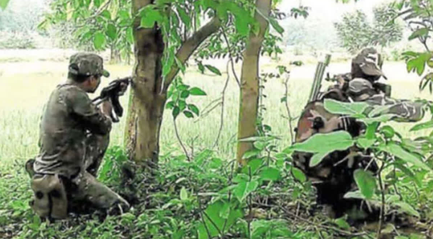 The forces and Maoists were exchanging fire till the fore noon of Thursday and it is expected to continue, they said.