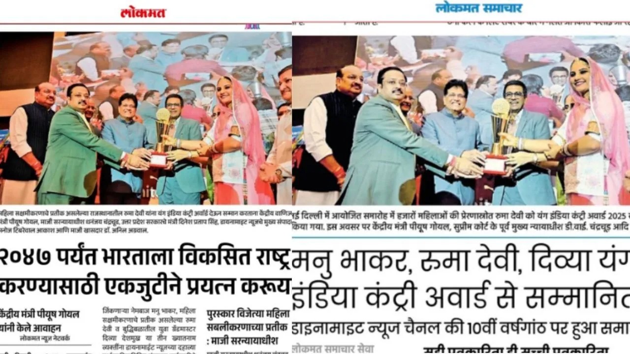 At the event, talented shooter Manu Bhaker, who brought glory to India by winning two medals in shooting at the Paris Olympics, Ruma Devi, a symbol of women's empowerment and an inspiration to thousands of women who have risen from their struggles to the pinnacle of success, and India's young chess Grandmaster, Divya Deshmukh, who won two gold and one bronze medals at the Women's Chess Olympiad, were honored with the "Young India Country Award 2025."