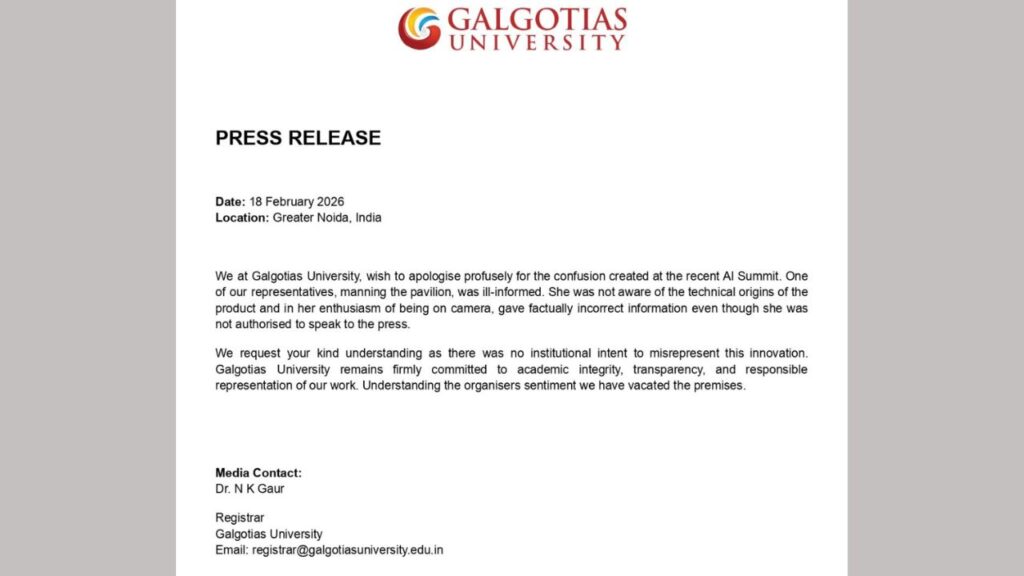 Amid the robodog controversy at the India AI Impact Summit 2026, Galgotias University apologised for the confusion and attributed the misinformation to Professor Neha Singh, citing her lack of technical awareness.