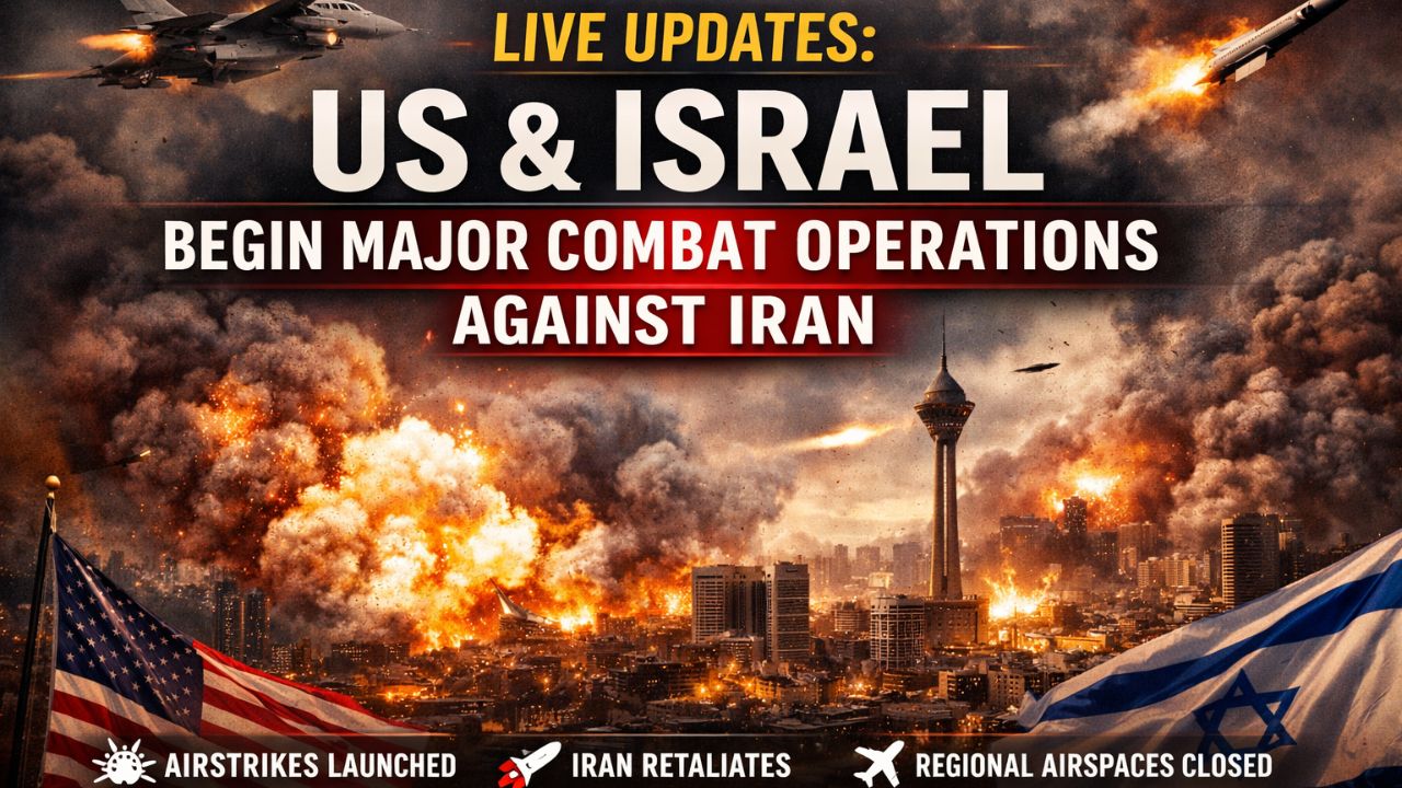 The United States and Israel have launched large-scale military strikes on Iran, with President Donald Trump announcing major combat operations. Explosions are reported in Tehran, multiple regional airspaces are shut, and Iran is retaliating, raising fears of a wider Middle East conflict.