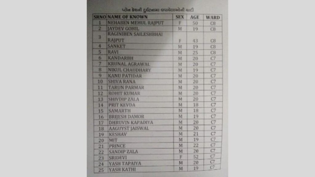 Several injured have been identified so far after the Ahmedabad plane crash. The list of passengers and local people who were brought to the hospital in a seriously injured condition during relief and rescue operations is being prepared by the administration.