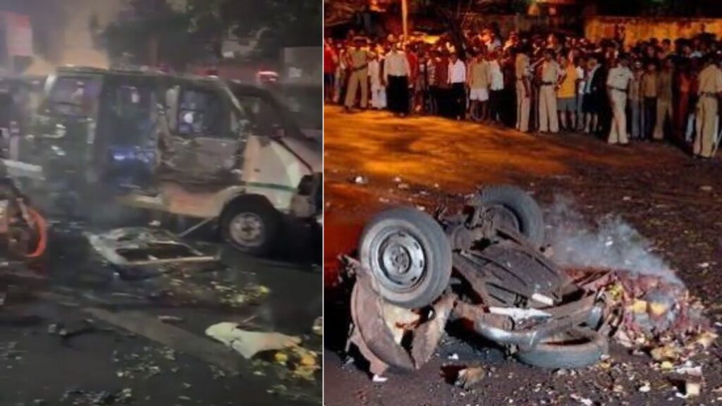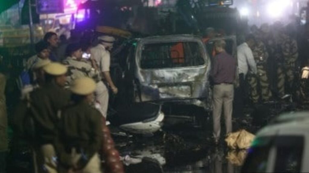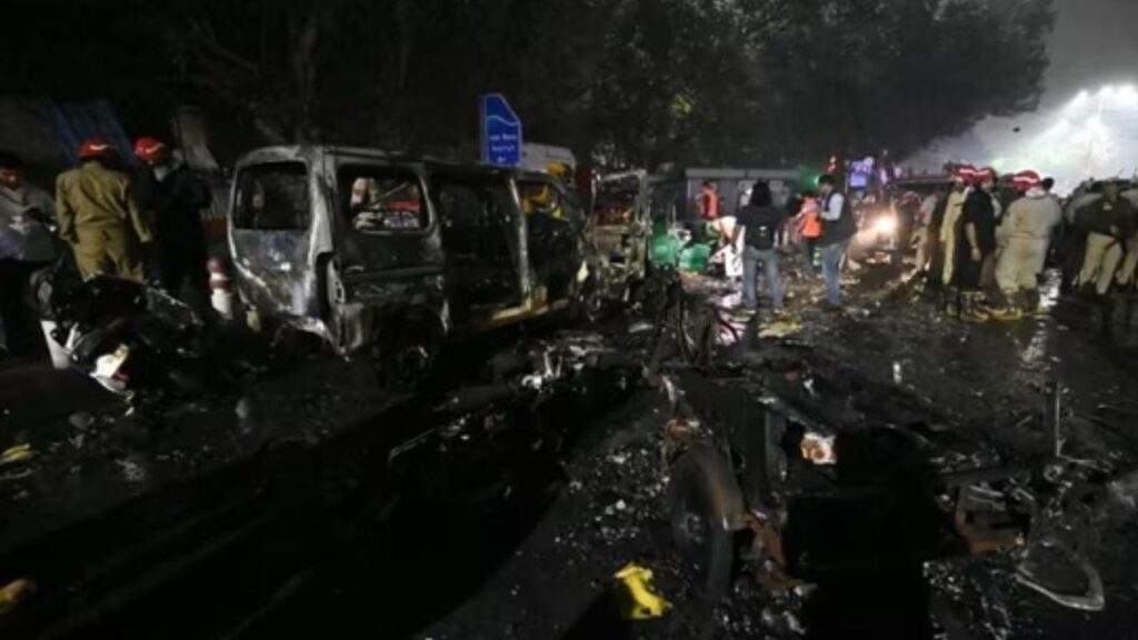 New Delhi: A powerful blast shook the vicinity near the Red Fort metro station in Delhi, causing panic among commuters. Photos from the scene reveal the extent of the damage, the swift emergency response, and heightened vigilance in the area.
