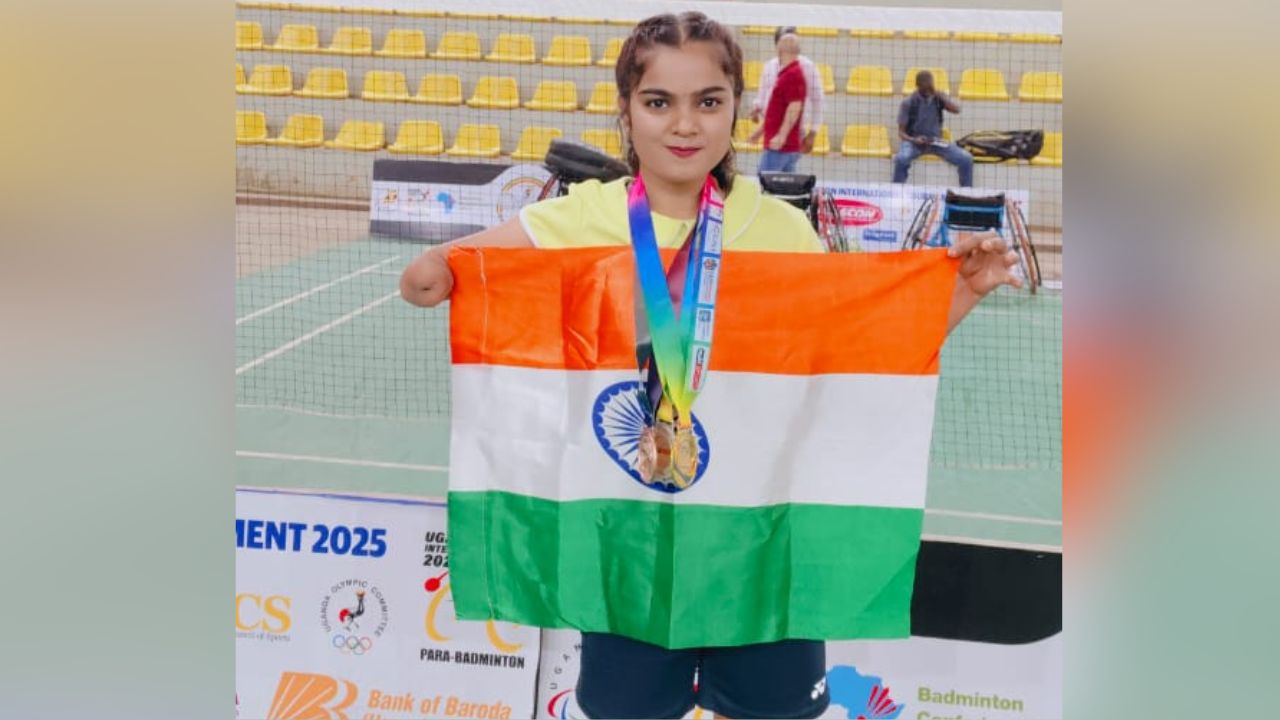 Jalaun: Swati Singh, the differently abled daughter of village Amita of Konch tehsil of Jalaun district, has brought laurels to India by performing brilliantly in the Uganda International Badminton Tournament-2025 held in Kampala, Uganda. She has increased the prestige of the district and the state by winning gold, silver, and bronze medals in the competition.