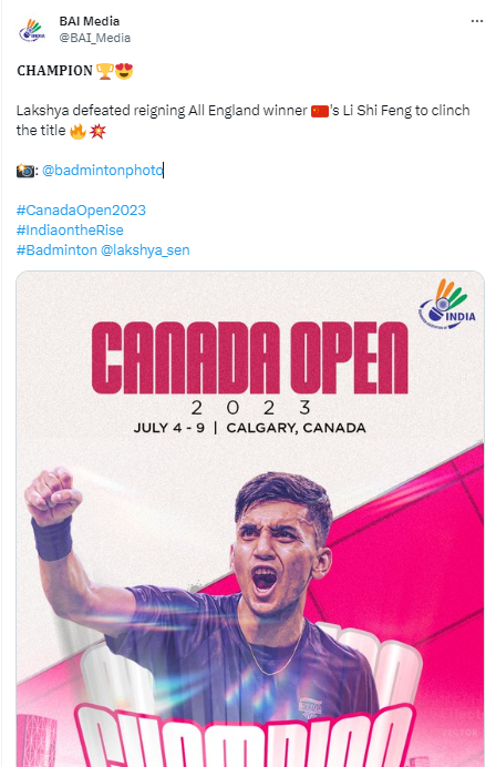 Indian Badminton player Lakshya Sen defeated China’s Li Shi Feng in straight sets 21-18 and 22-20 to clinch the men’s singles title at the Canada Open 2023 early Monday. Read further on Dynamite News: