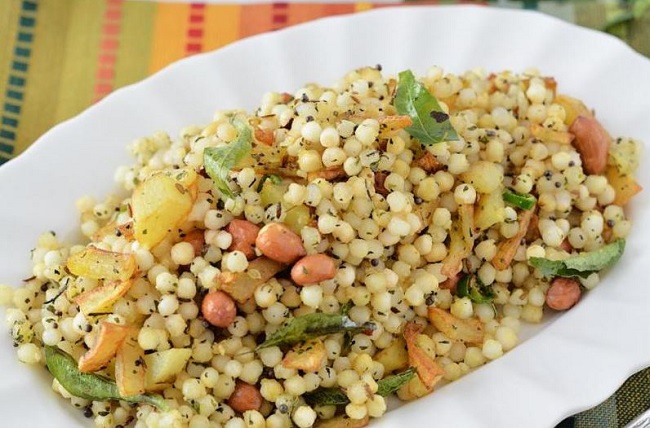Sabudana khichdi is made with soaked sabudana, potato, ghee, grated coconut, green chillies, roasted peanuts and coriander as the main ingredients. Loaded with carbohydrates, this dish will keep you full for longer and will also give you instant energy. Also sabudana kheer and sabudana vada, also work as great fasting snack.
