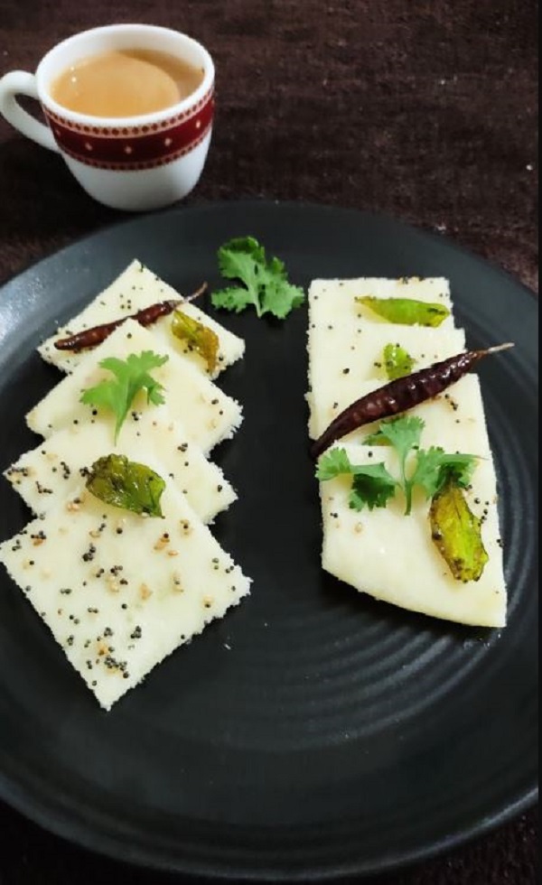 Try this light dhokla recipe during your fasting days. Made with steamed samwat ke chawal, whole red chillies, cumin, ghee and curry leaves. And serve it with mintchutney.