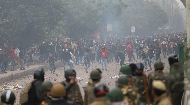 The anti-CAA protest turned violent in northeast Delhi's Seelampur area, forcing police to use tear gas shells to disperse the protestors, who torched two buses on Tuesday.