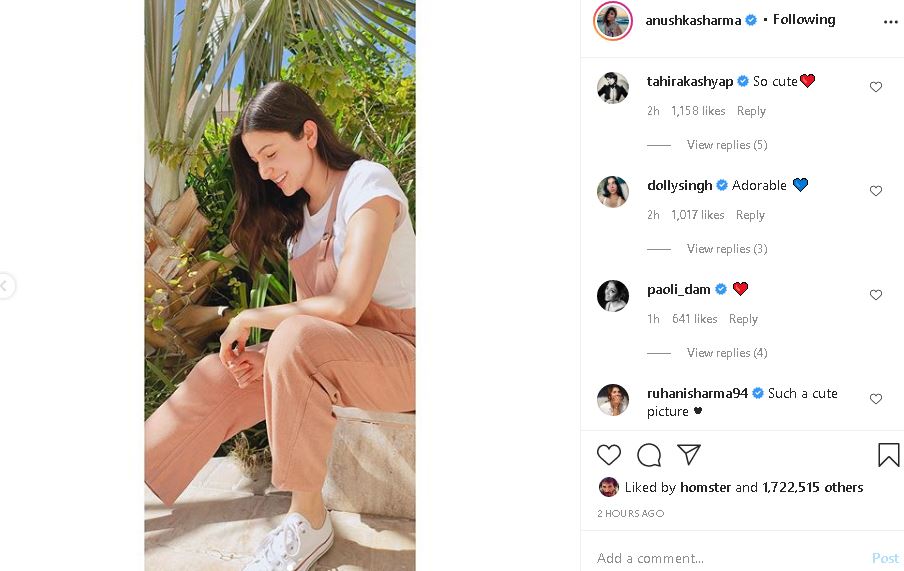 In the snaps, Anushka is seen smiling as she poses in sheer sunlight, amid the backdrop of a picturesque view of green shrubs in the backdrop. The actor looks stunning in the no make-up pictures. Sporting a casual look, Anushka paired a peach dungaree with a white T-shirt and white canvas shoes.