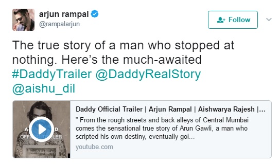 He wrote, "The true story of a man who stopped at nothing. Here's the much-awaited #DaddyTrailer @DaddyRealStory @aishu_dil."