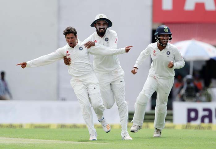 Debutant Kuldeep Yadav took three of the six Australian wickets.