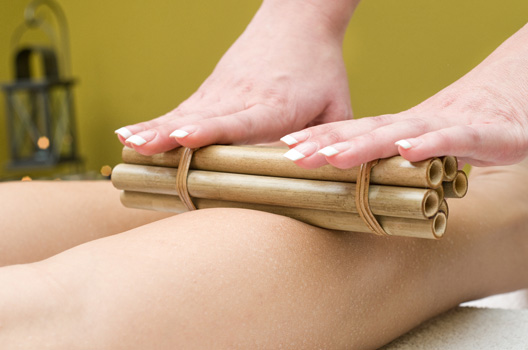 Bamboo tapping involves using a tightly bound bundle of thin rods of bamboo that resembles the end of a narrow old-fashioned broom, to tap areas of the body.