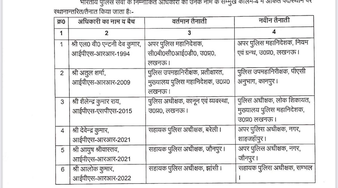 Lucknow: In a massive reshuffle, the Uttar Pradesh Government has tranasferred three dozen IPS officers across the state.
