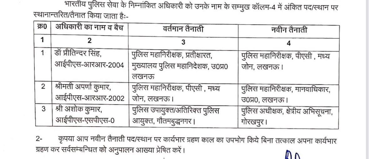 Dr. Preetinder Singh, IPS-RR-2004: Transferred from Inspector General of Police, on waiting list, Headquarters to Inspector General of Police, PAC, Central Zone, Lucknow.