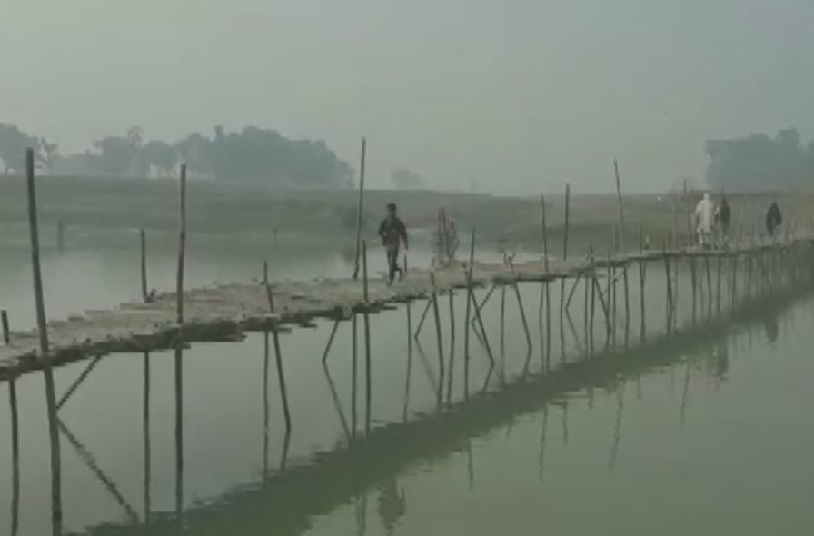 He said that the polling station and shops are located at one side of the bridge. Earlier, people used to cross the water stream on the boat to reach the polling station, the local added.