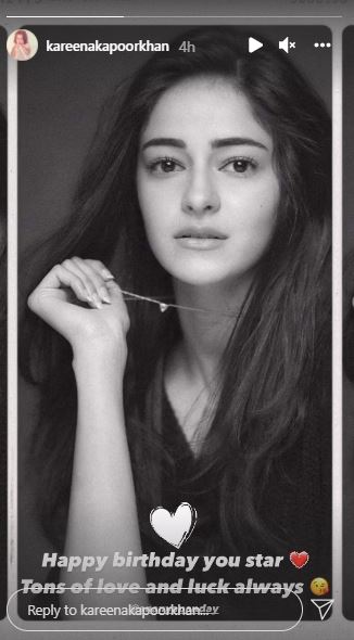 Mumbai (Maharashtra): As actor Ananya Panday turned 23 years old on Saturday, several celebrities shared their birthday wishes for the actor on social media. Taking to her Instagram Story, Kareena Kapoor Khan posted a monochrome picture of Ananya and wrote, "Happy birthday you star. Tons of love and luck always."