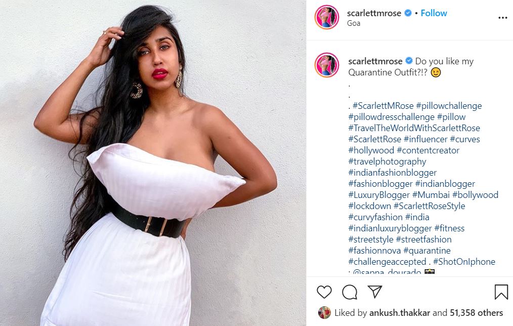 Splitsvilla 7 winner, Scarlett M Rose also took the challenge and put her sizzling picture on Instagram account. She wrote: Do you like my Quarantine Outfit?!? ?