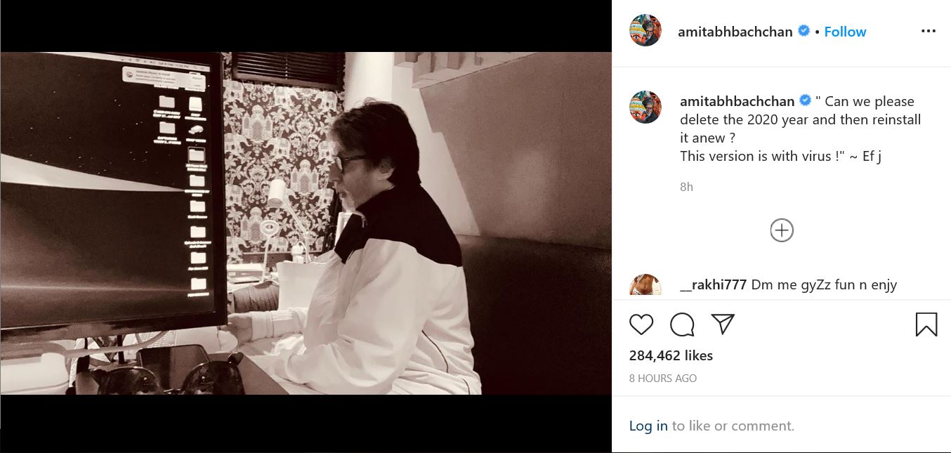 Megastar Amitabh Bachchan on Monday took to Instagram and shared a picture of himself along with a thought about deleting the year 2020.