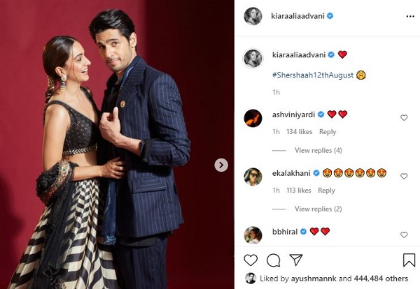 Soon after sharing the pictures, Kiara's comments section was flooded with heartfelt messages from the couple's fans. A fan wrote, "my hearttt", another one wrote, "omgg" and many dropped heart emoticons for the actor duo.The biographical action drama 'Shershaah' will unfold the events and emotions behind the Kargil war. The movie traces the story of Captain Vikram Batra and Dimple Cheema.