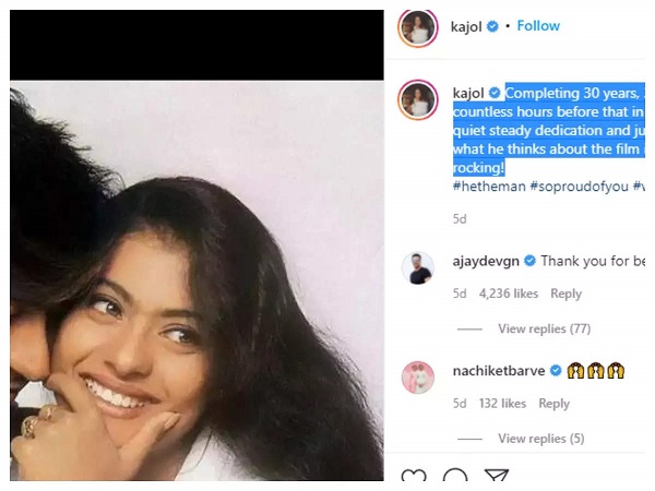 Reacting to Kajol's post, a social media user commented, "It's my favourite movie."