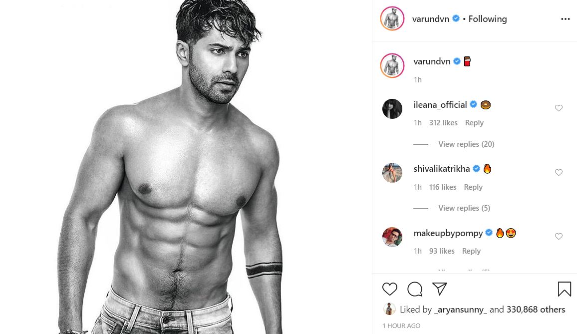 Mumbai: Bollywood heartthrob Varun Dhawan has recently posted his half naked photo on social media getting viral on the internet.