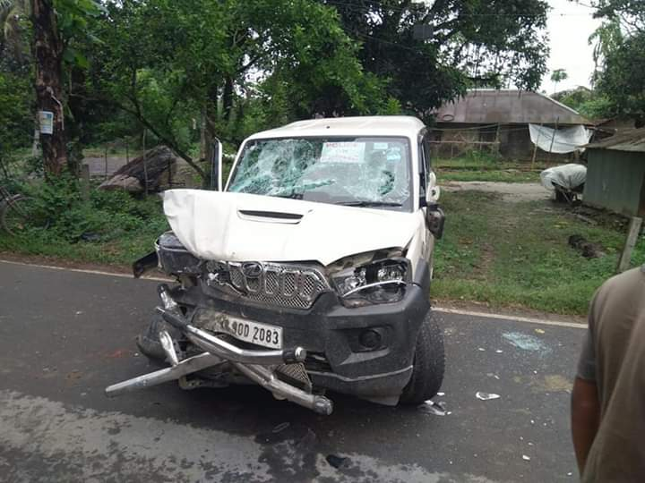 None was arrested in connection with the accident and the police vehicle was allegedly damaged by BJP workers.