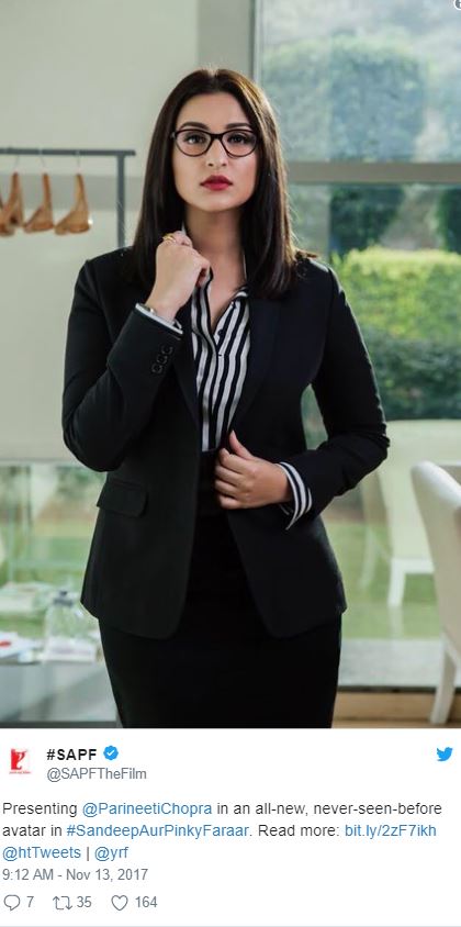 The official Twitter handle of the movie shared the pictures with the caption, "Presenting @ParineetiChopra in an all-new, never-seen-before avatar in #SandeepAurPinkyFaraar | @SAPFTheFilm."