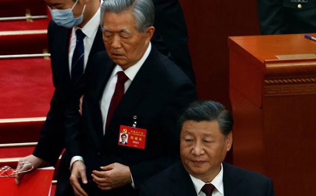 Beijing: Chinese former President Hu Jintao was unexpectedly escorted out of the closing ceremony of a congress of the ruling Communist Party on Saturday.