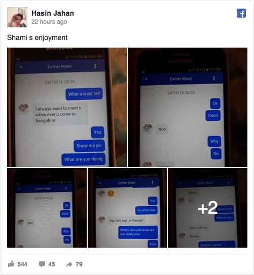 In a bid to expose the pacer's extra-marital affair, she posted several screenshots of Messenger and Whatsapp messages on her unverified Facebook wall.