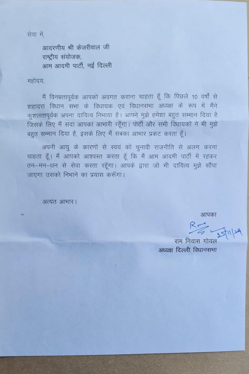 The Shahdra MLA wrote a letter to party supremo Arvind Kejriwal to inform about his retirement from electoral politics. Read further on Dynamite News: