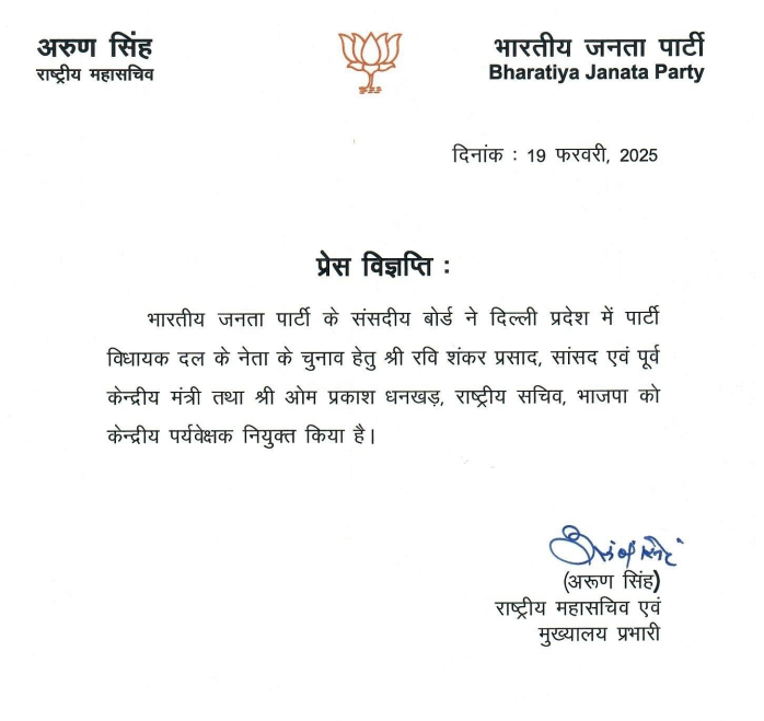 #BREAKING Ravi Shankar Prasad, OP Dhankar appointed as Observers for Delhi BJP Legislative Party.#BJP #Delhi #oathceremony #Politics @BJP4Delhi pic.twitter.com/8Z66GudMkA