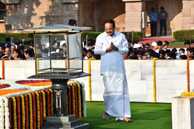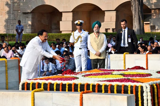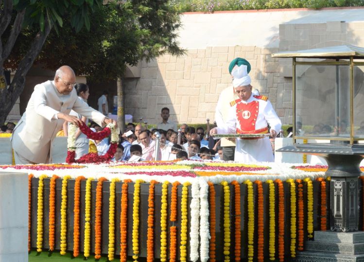 President Ram Nath Kovind and Vice President M Venkaiah Naidu on Wednesday paid floral tributes to Mahatma Gandhi at Rajghat on the occasion of his 150th birth anniversary.
