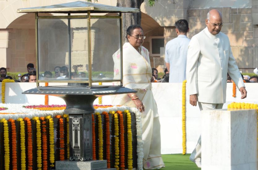 First Lady Savita Kovind, also accompanied the President in paying homage to Gandhi at Bapu's final resting place.
