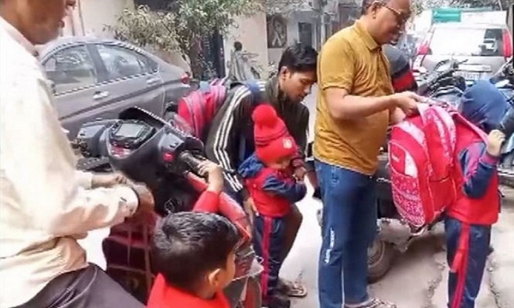 Students, accompanied by their parents, arrived early this morning to attend their classes at a school in the Geeta Colony area today. This comes after the Delhi government announced that schools in Delhi will reopen for physical classes on Monday, November 20, 2023.