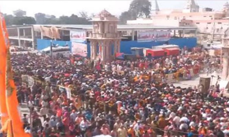 Ayodhya: Throngs of devotees converged at the Ram Janmabhoomi Temple in Ayodhya on Saturday, seeking solace in prayer and the divine darshan of Lord Ram.
