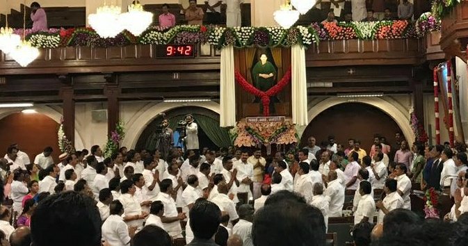 Earlier in the day, in the presence of Chief Minister E Palaniswami, Deputy Chief Minister O Panneerselvam and other MLAs, the Tamil Nadu Assembly Speaker P. Dhanapal unveiled the portrait of Jayalalithaa.