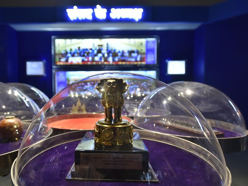 The national emblem is displayed at the Rashtrapati Bhavan Museum.