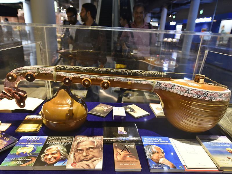A Veena is displayed along with former president APJ Abdul Kalamâs books at Phase-II.