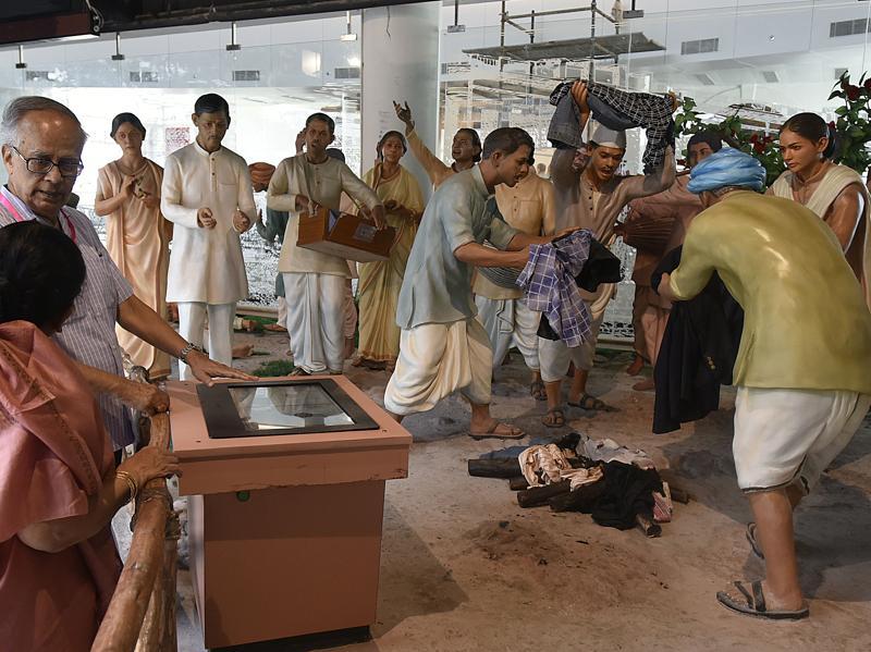 Wax statues are shown boycotting British clothes as part of the Swadeshi movement at Phase-II of the Rashtrapati Bhavan Museum.