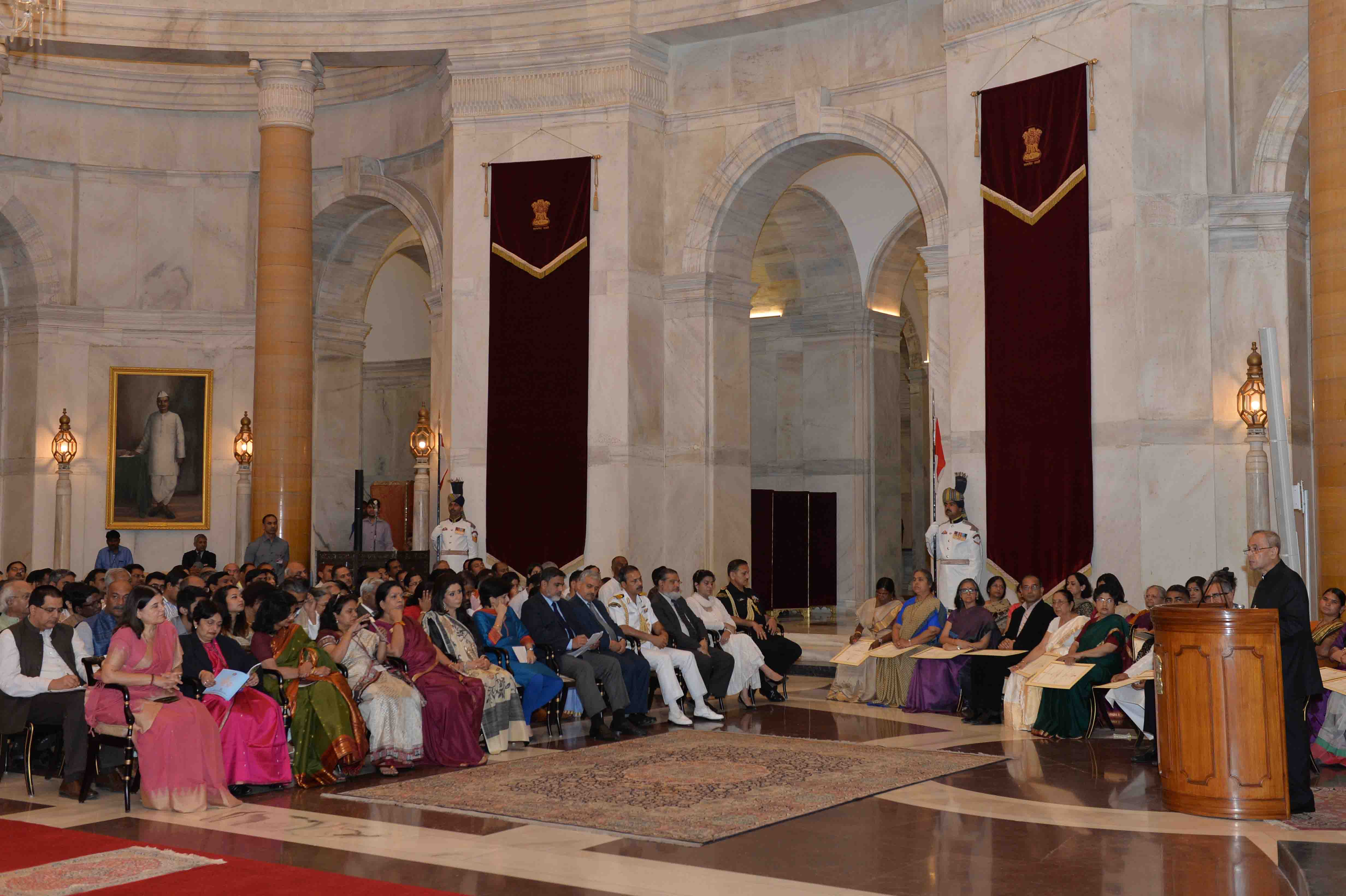 New Delhi / 8 March 2016. President of India Pranab Mukherjee conferred the Nari Shakti Puraskar to 11 organizations and 9 individuals today at the Rashtrapati Bhavan in honor of International Womenâs Day.