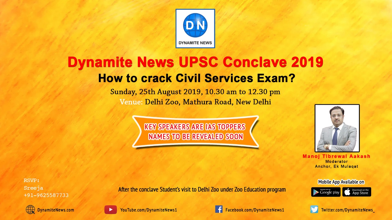 New Delhi: If you really want to know How to qualify the UPSC Civil Services Exam, here is a golden opportunity for you to participate in the ‘Dynamite News UPSC Conclave 2019’ on Sunday, 25th August at 10 am at the National Zoological Park, Mathura Road, New Delhi.