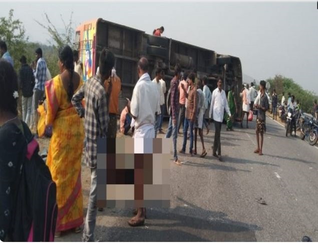 Tumakuru (Karnataka): As many as eight people died and more than twenty were injured critically on Saturday as a bus overturned near Pavagada, Tumakuru district.