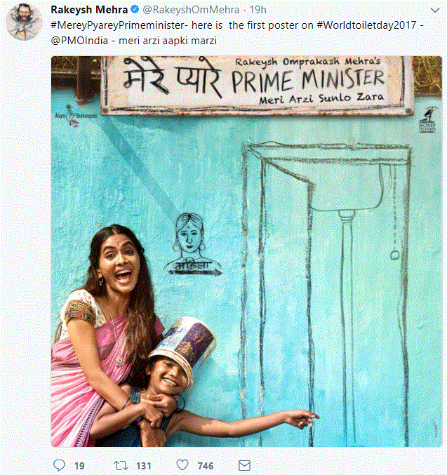 "#MereyPyareyPrimeminister- here is the first poster on #Worldtoiletday2017 -@PMOIndia - meri arzi aapki marzi," Mehra posted on Twitter.