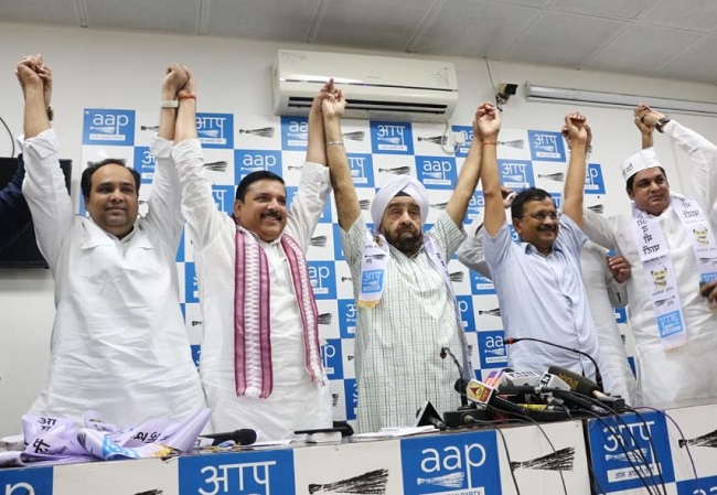 New Delhi: Four-time Congress MLA Parlad Singh Sawhney joined the Aam Aadmi Party on Sunday in presence of Delhi Chief Minister Arvind Kejriwal.